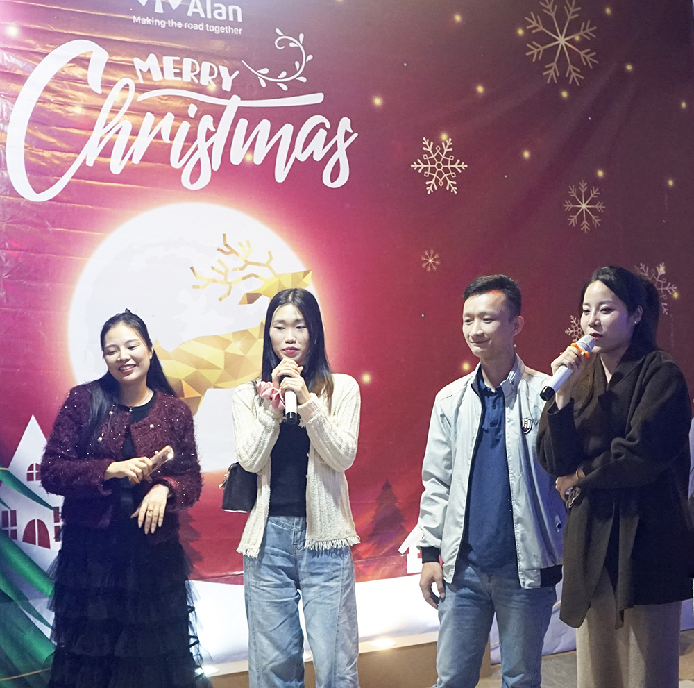 Trong không gian tràn ngập ánh sáng lung linh từ những dải đèn, cây thông Noel rực rỡ cùng những bông tuyết giả, bữa tiệc Giáng Sinh tại Alan đã trở thành một không gian thật sự đặc biệt. Các khối văn phòng và khối xưởng cùng hội tụ tại một địa điểm chung, mang đến một bầu không khí thân thiện và gần gũi, như một gia đình lớn cùng nhau chào đón mùa lễ hội.